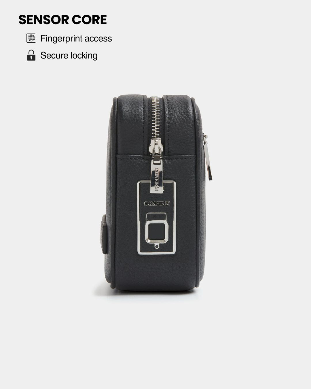 Vervaardigd uit premium leer en voorzien van geïntegreerde vingerafdrukbeveiliging.